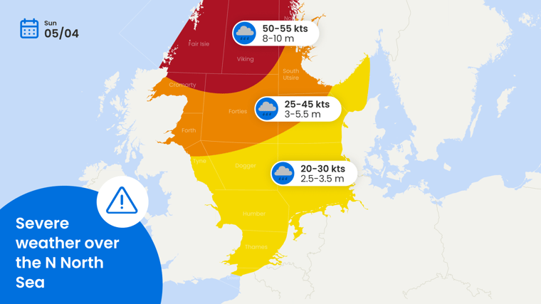 Figure 1. Severe weather over the northern North Sea on Friday 05/04.
