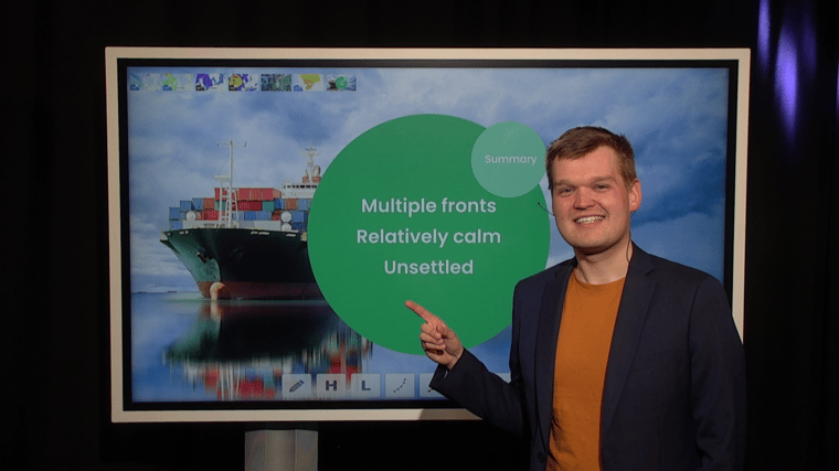 Various frontal troughs will sweep across the North Sea this week. Furthermore, an active low is expected to cross the southern North Sea late Friday and Saturday. In between the troughs and the low the weather remains unsettled but both wind and waves are expected to be relatively calm at times. As a result, some weather windows are anticipated, that will provide workability opportunities, although they are expected to be quite short. Weekly weather briefing