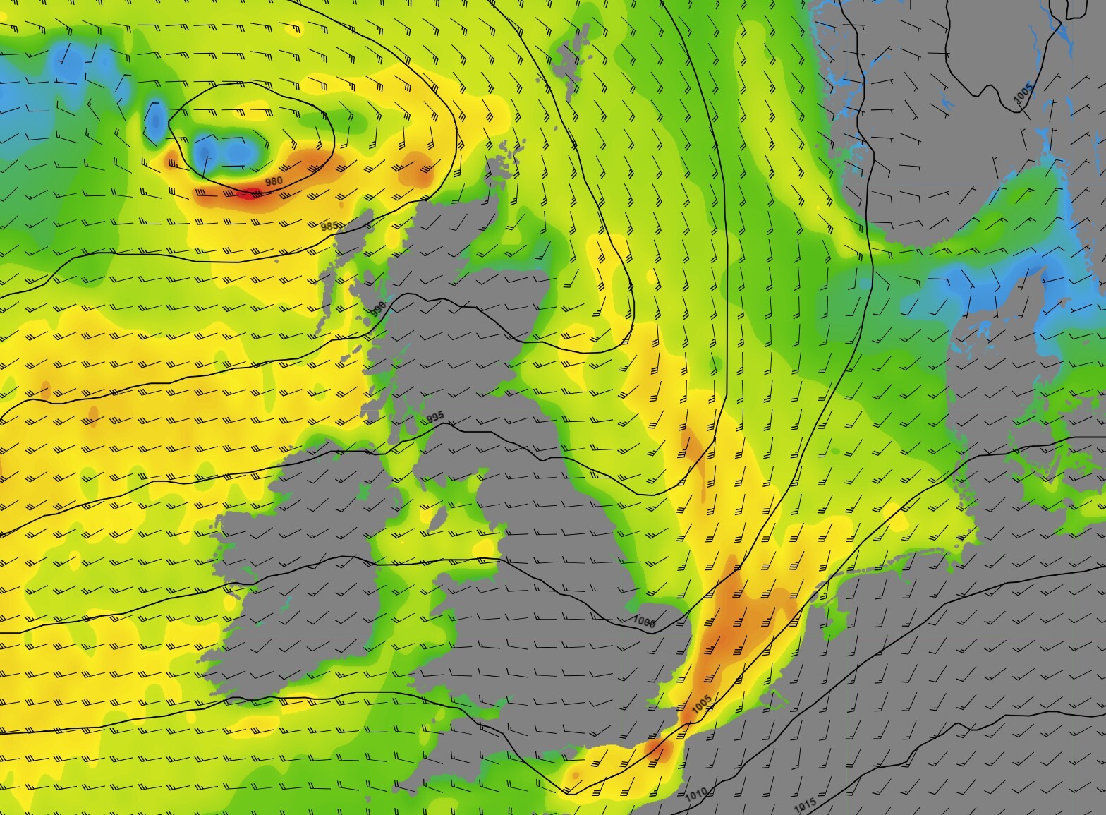 Over the weekend, pressure is expected to rise over Scandinavia, potentially extending a ridge over the North Sea. Meanwhile, a deep low is expected well west of the UK (950 hPa), slowly tracking eastwards towards Ireland. This will maintain unsettled conditions, although precise developments for the North Sea remain uncertain at this time.
